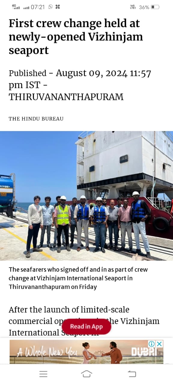 After the inauguration of Adani Vizhinjam International Seaport, we successfully carried out the first crew change operations.