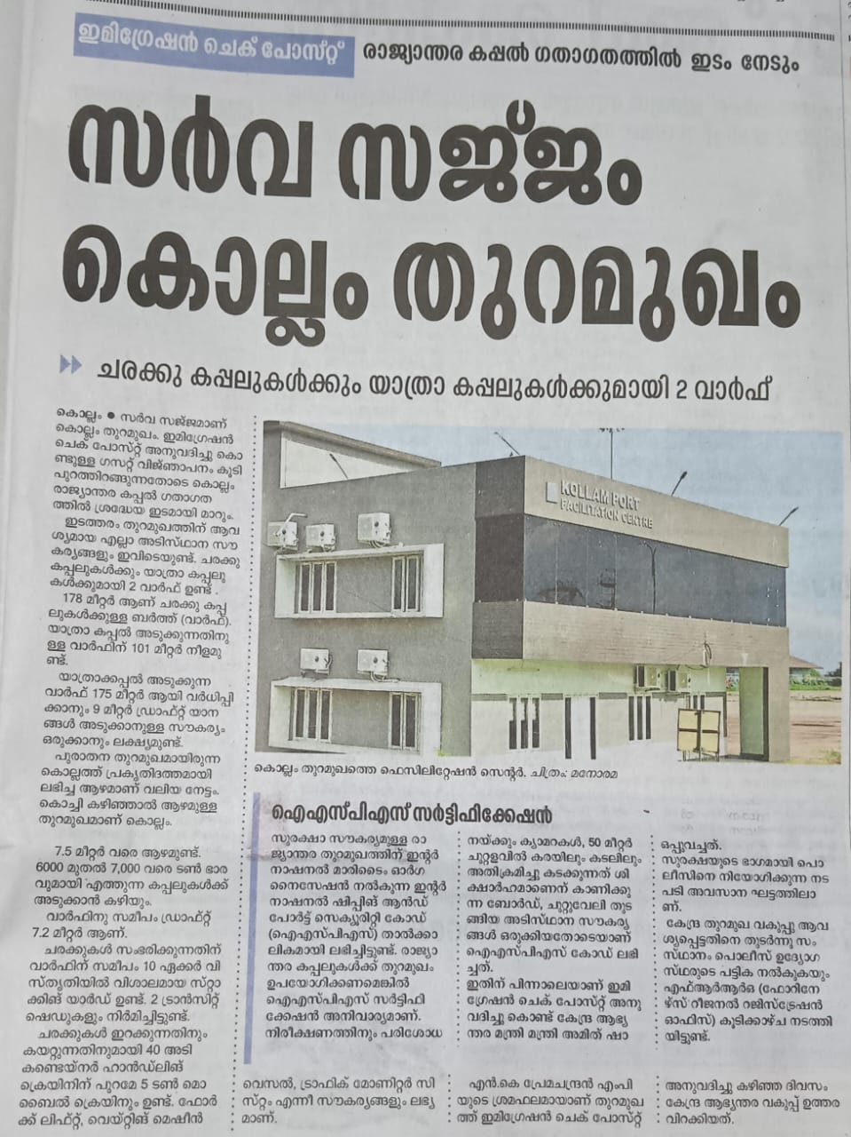 We aim to promote Vizhinjam and Kollam Ports as strategic international maritime hubs β creating a network that supports Indiaβs blue economy, ship movements, and trade development.