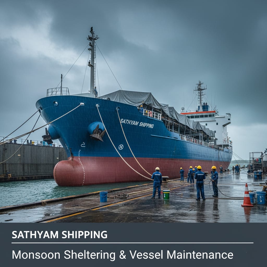 Monsoon sheltering for Adani vessels and international ships at Kollam Port, with round-the-clock maintenance, spares, and support during rough weather.