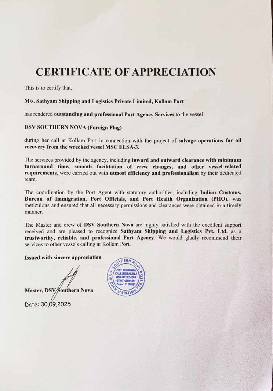 π Welcome to Sathyam Shipping & Logistics Pvt. Ltd.